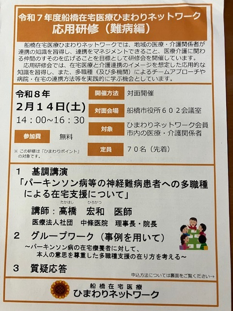 2026年2月14日、船橋市役所で行われた船橋在宅医療ひまわりネットワーク研修会で講師を務めました!